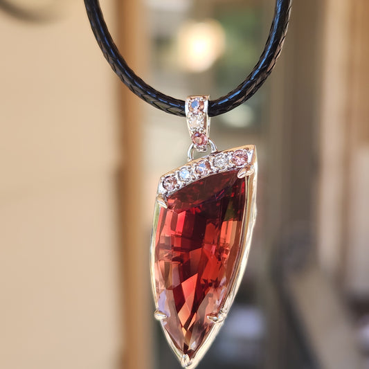 11.58 ct Oregon Sunstone Pendant 14 kt gold with Diamonds.