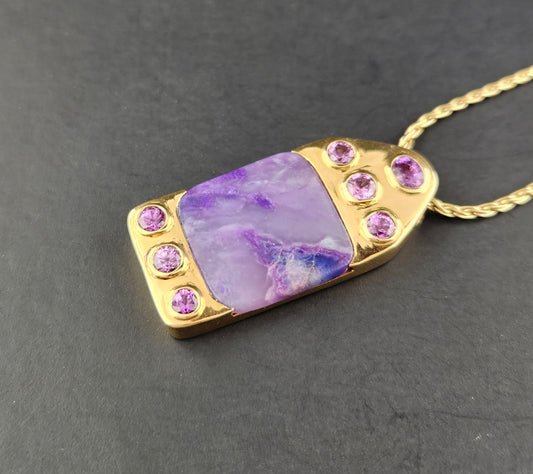 Sugalite and Sapphires Pendant set in 18 ky Gold