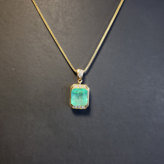 1.60 ct Emerald set in 14k yellow gold Pendant