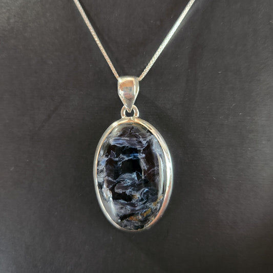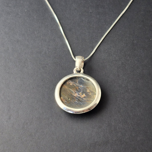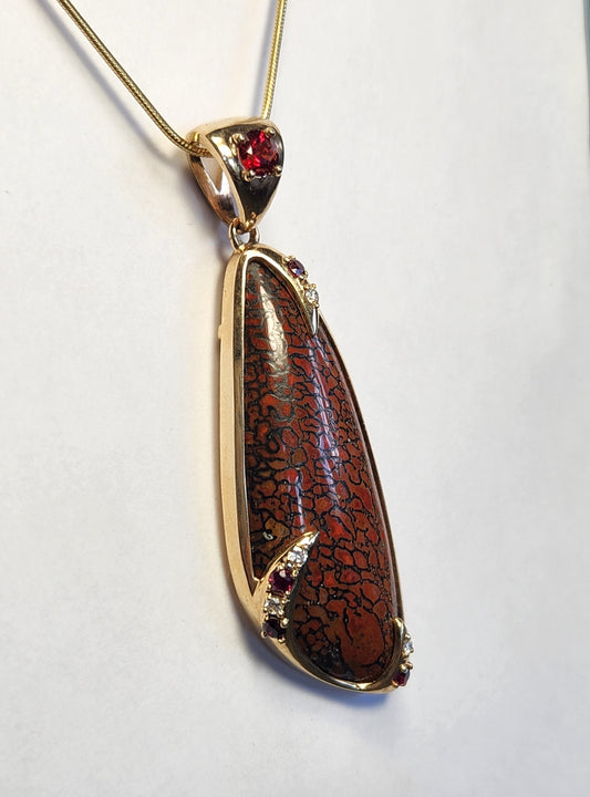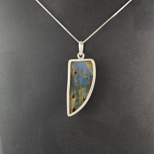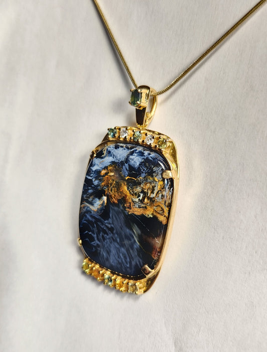 Pietersite, Diamonds and Sapphires Pendant set in 14ky