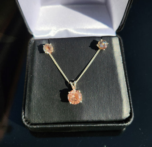 Oregon Sunstone Earring and Pendant Set in sterling silver