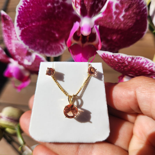 Oregon Sunstone Pendant and Earring set in 14 ky gold