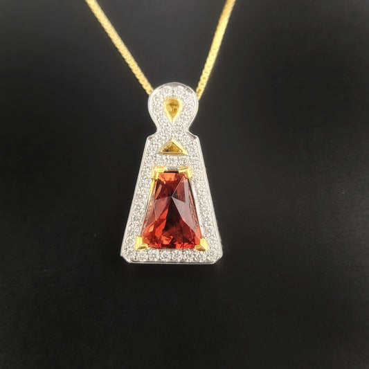 2.35ct Oregon Sunstone 18k White & Yellow Gold Pendant.