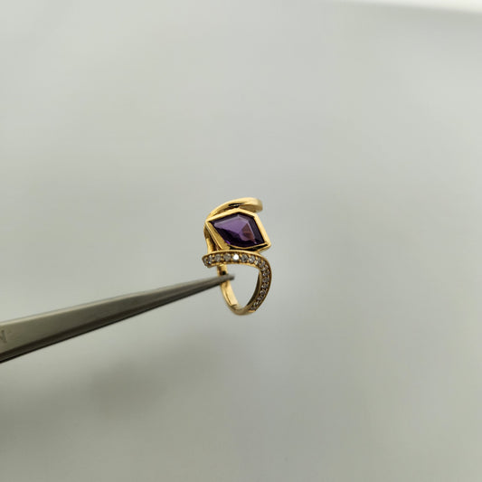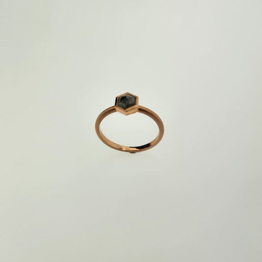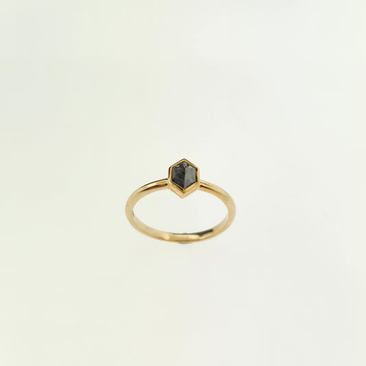 Salt & Pepper Hexagon Diamond Ring 14 k Yellow Gold.