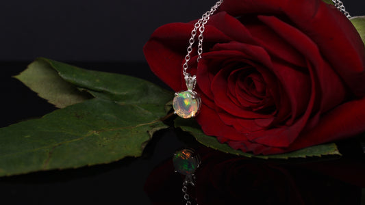 1.13 ct 8 mm Green red and yellow color Ethiopian Opal set in Silver Pendant.