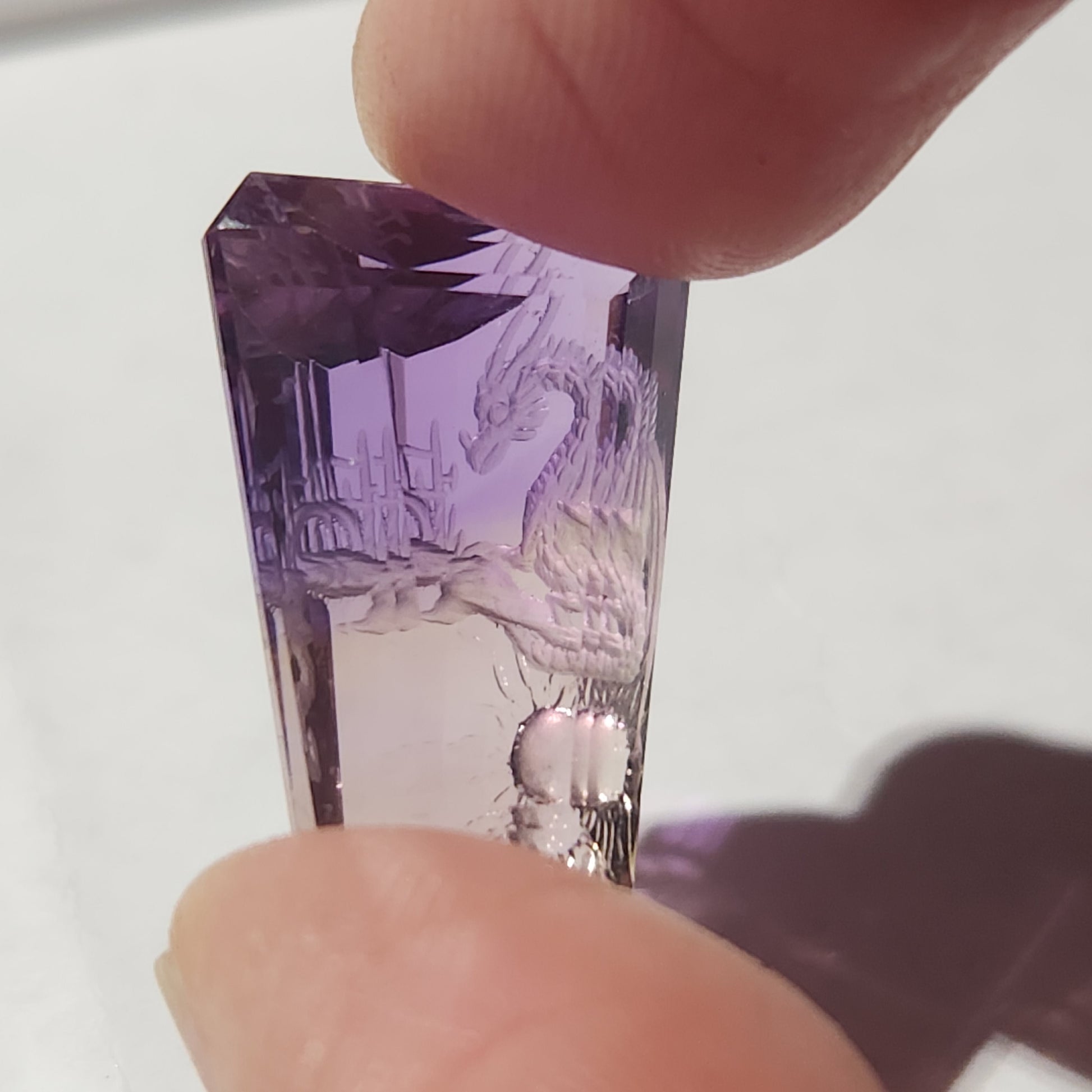 Very cool Ametrine Carving Dragon 25.67 ct. 21.6 x 15.8 x 11.5 mm.
