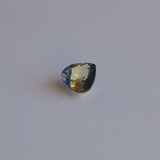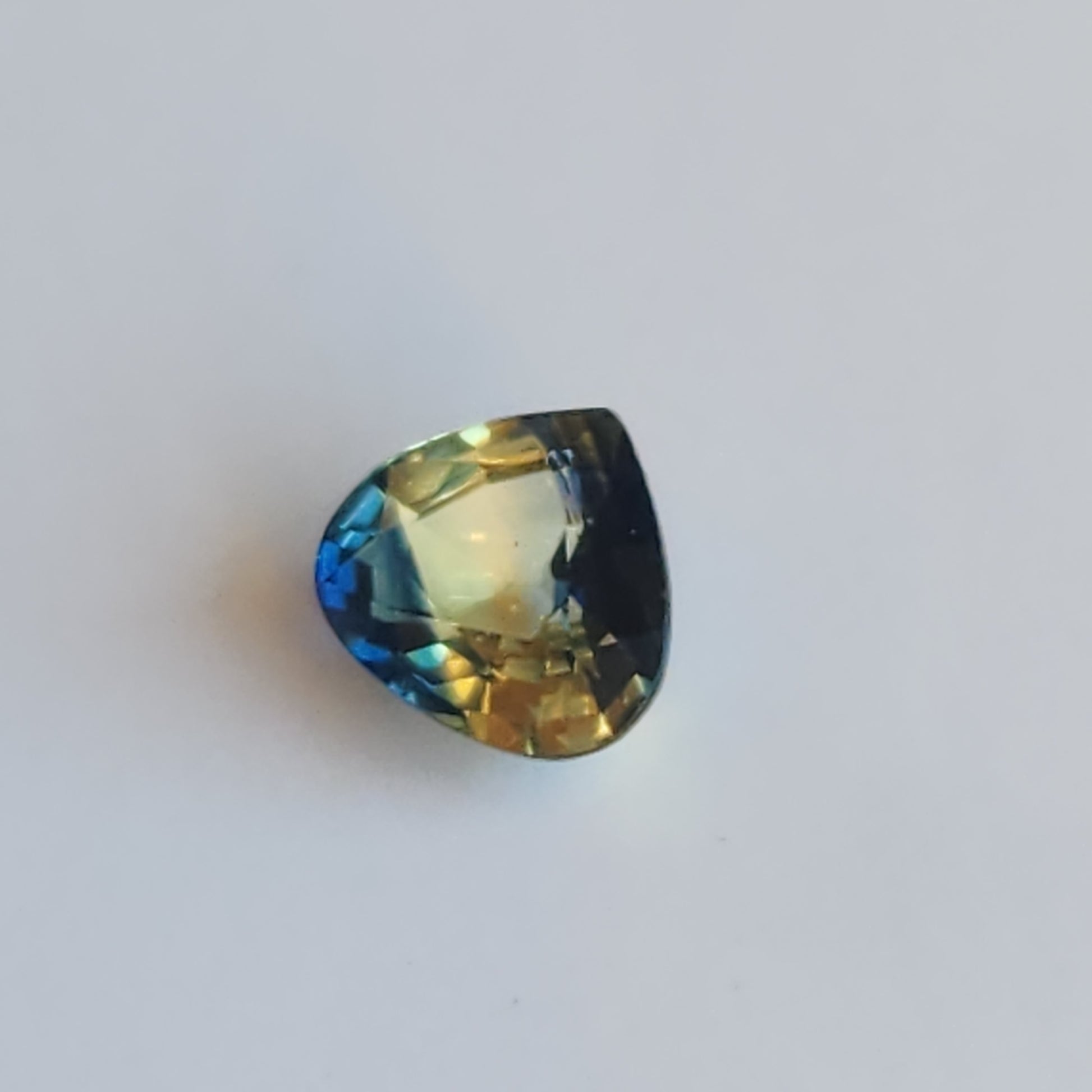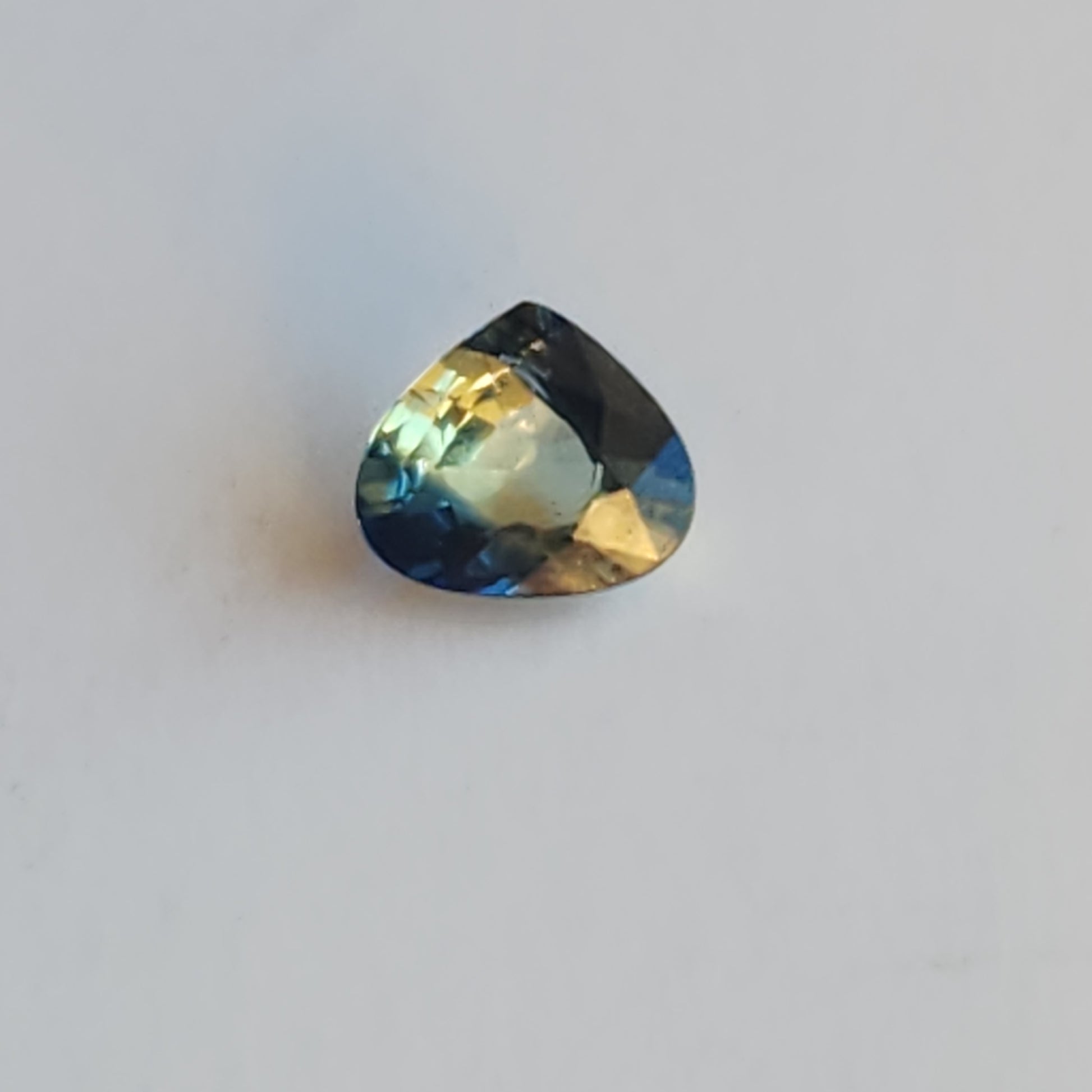 Pear Shaped Blue and Yellow Bicolor Sapphire. 0.71 ct no heat 6 x 5.2 mm.