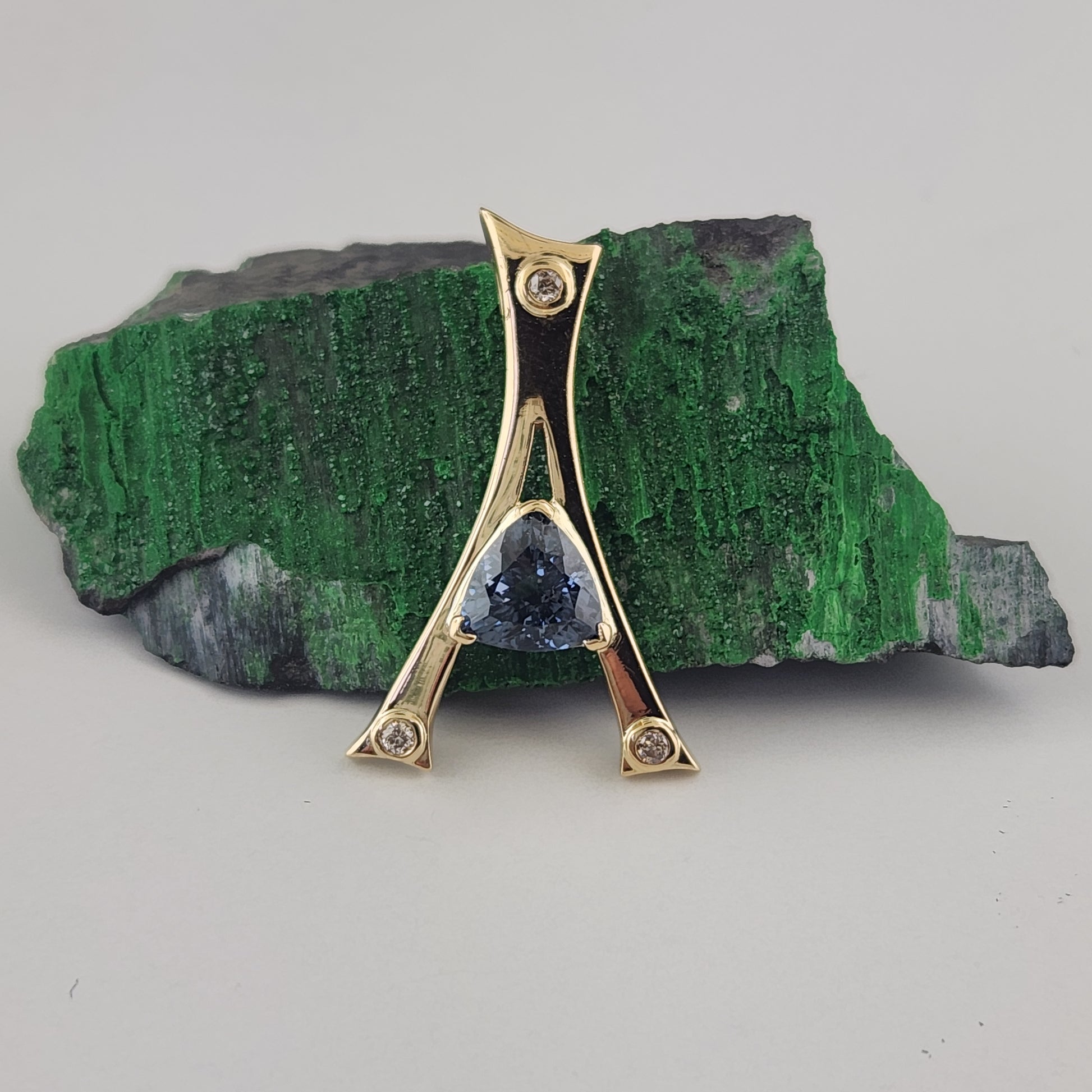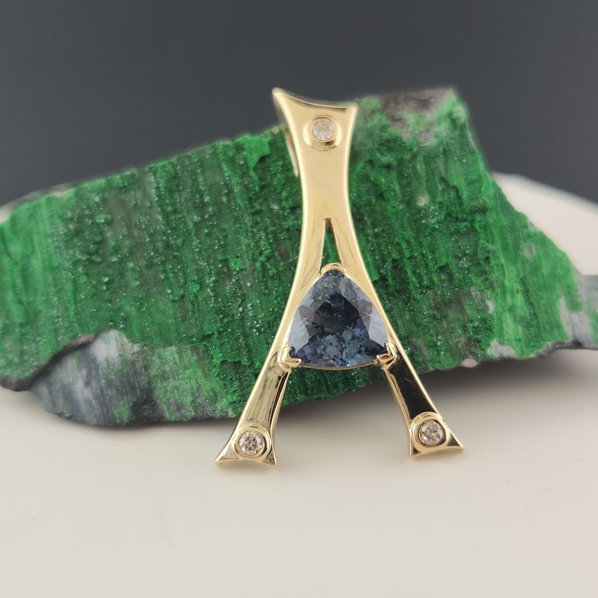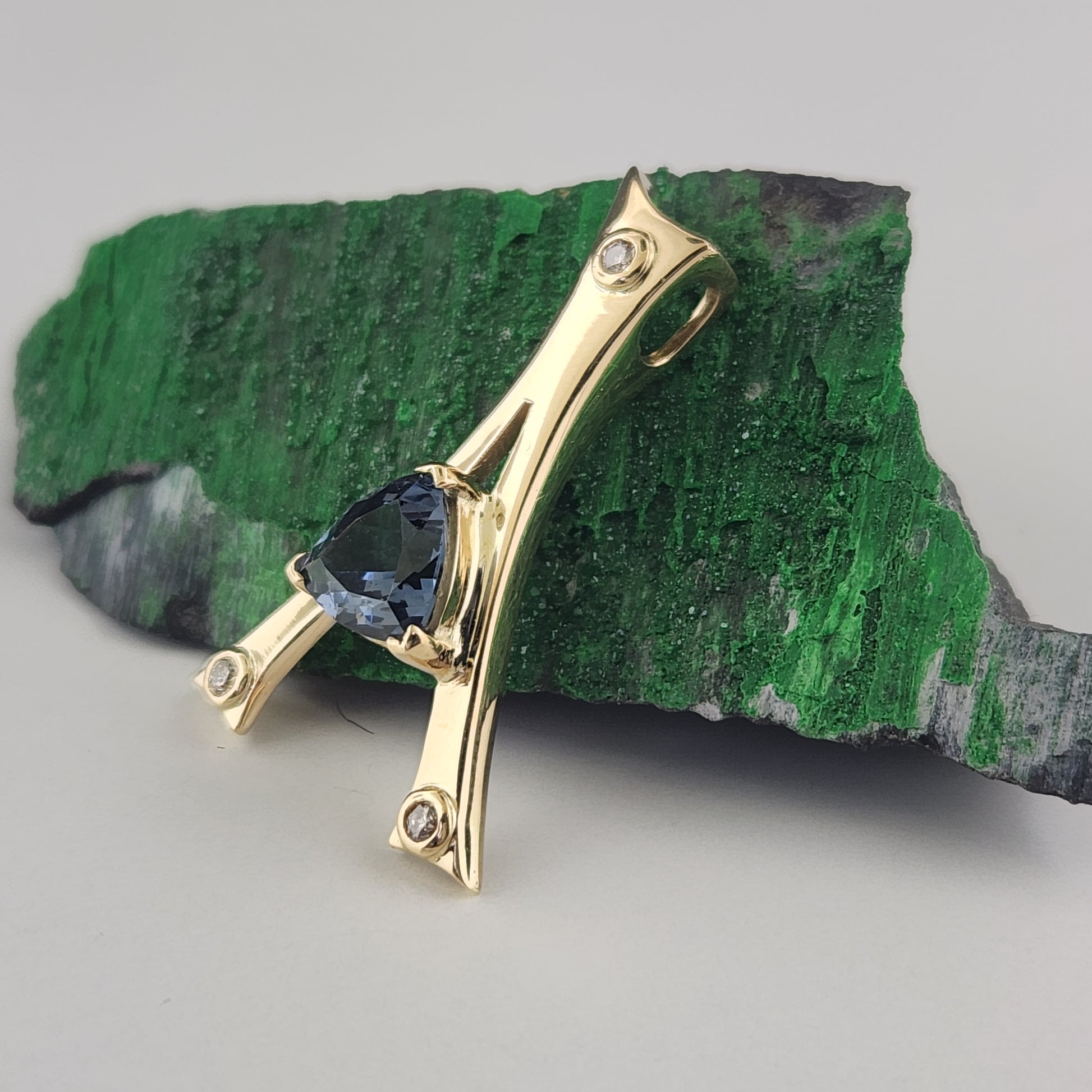 Blue Spinel Pendant set in 18kt yellow gold and Diamonds