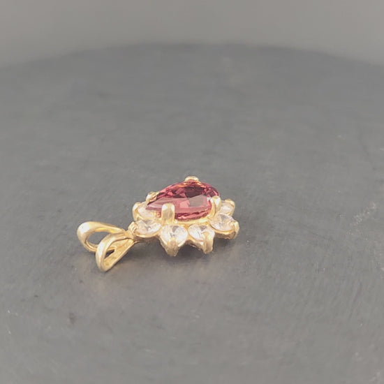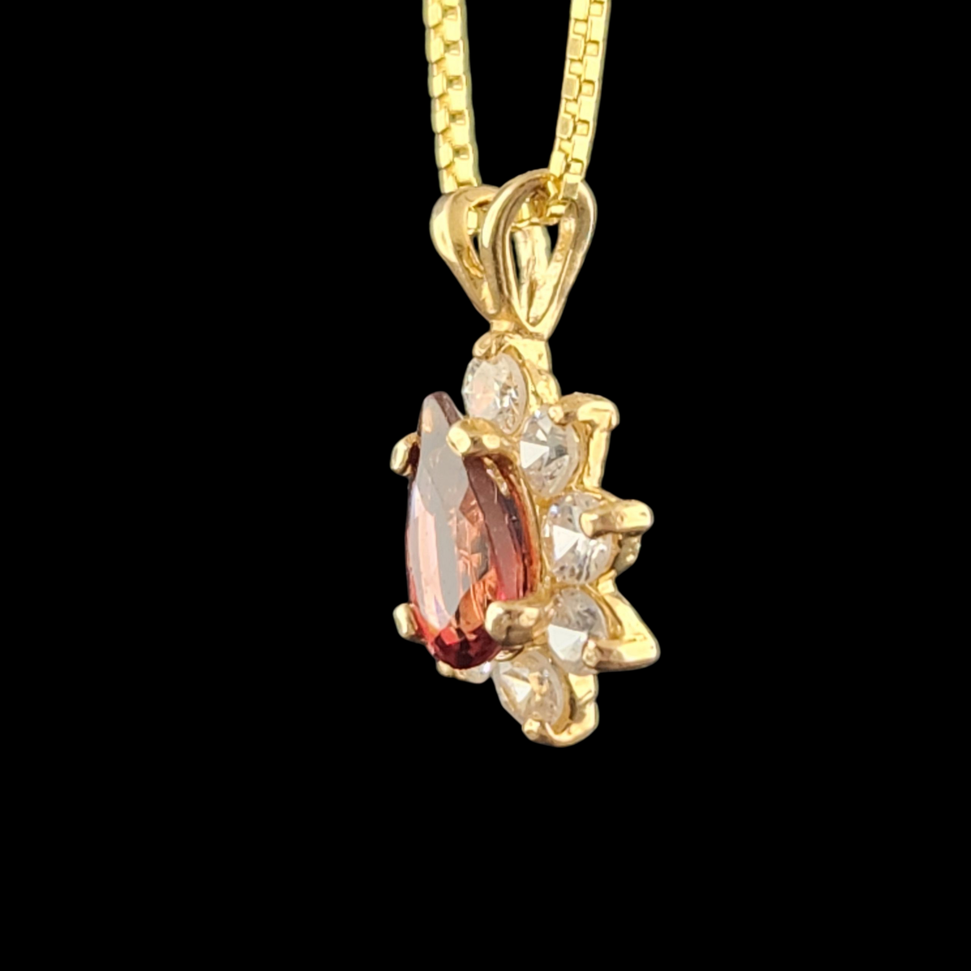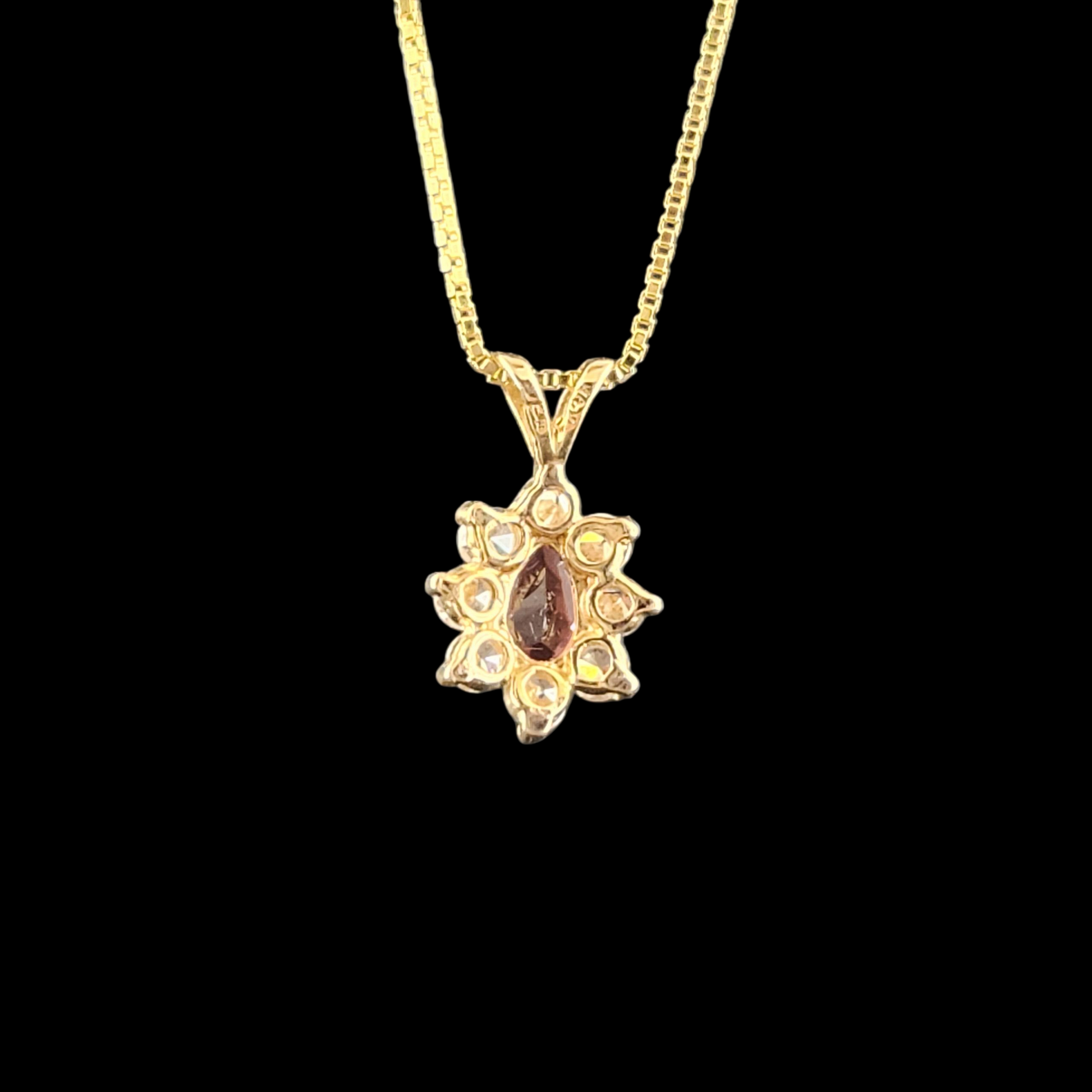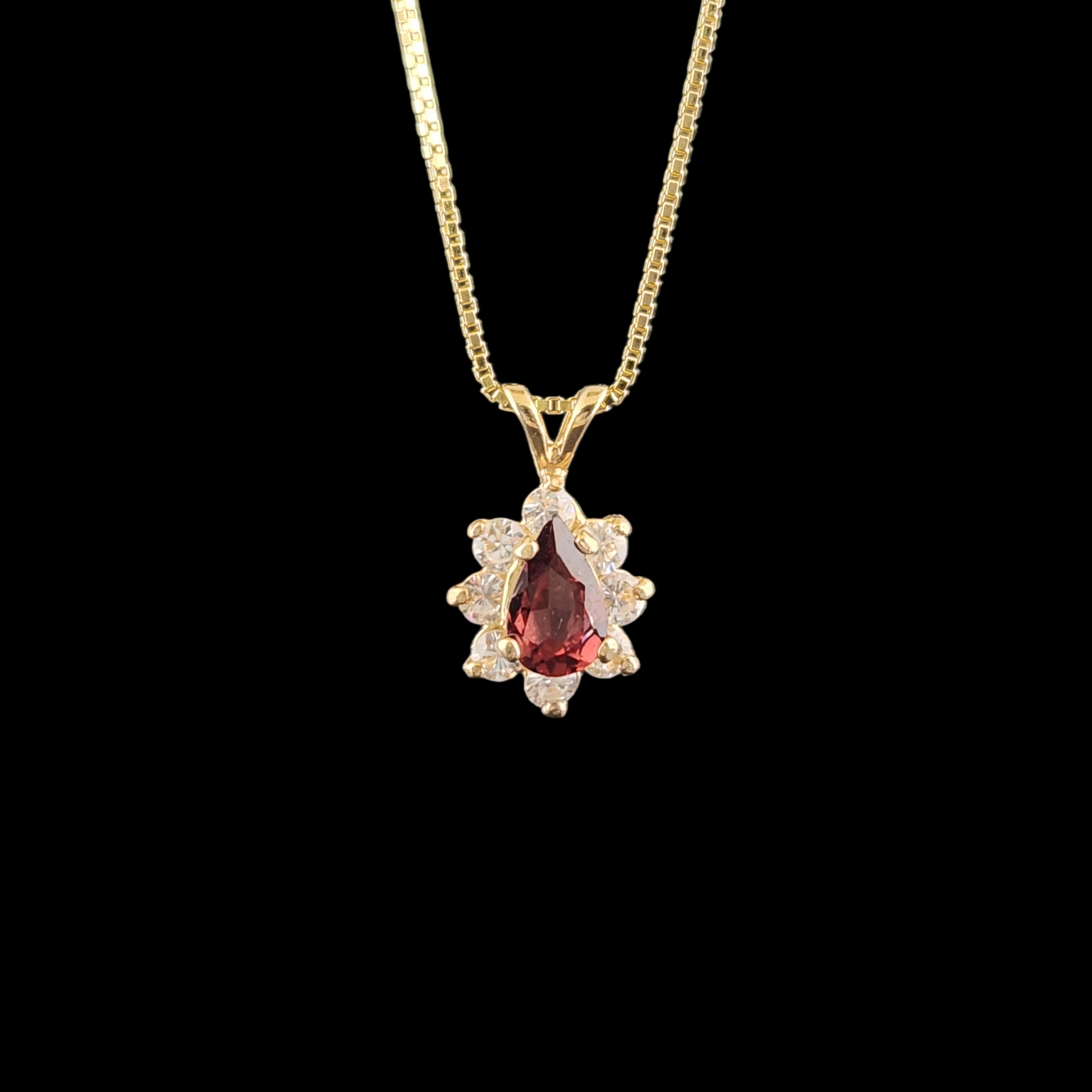 Flashy pear shaped red 7x4mm Garnet and CZ set in 14ky gold.