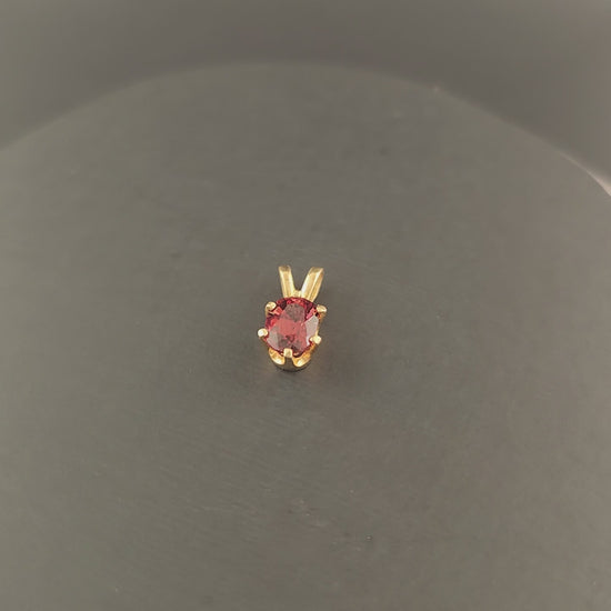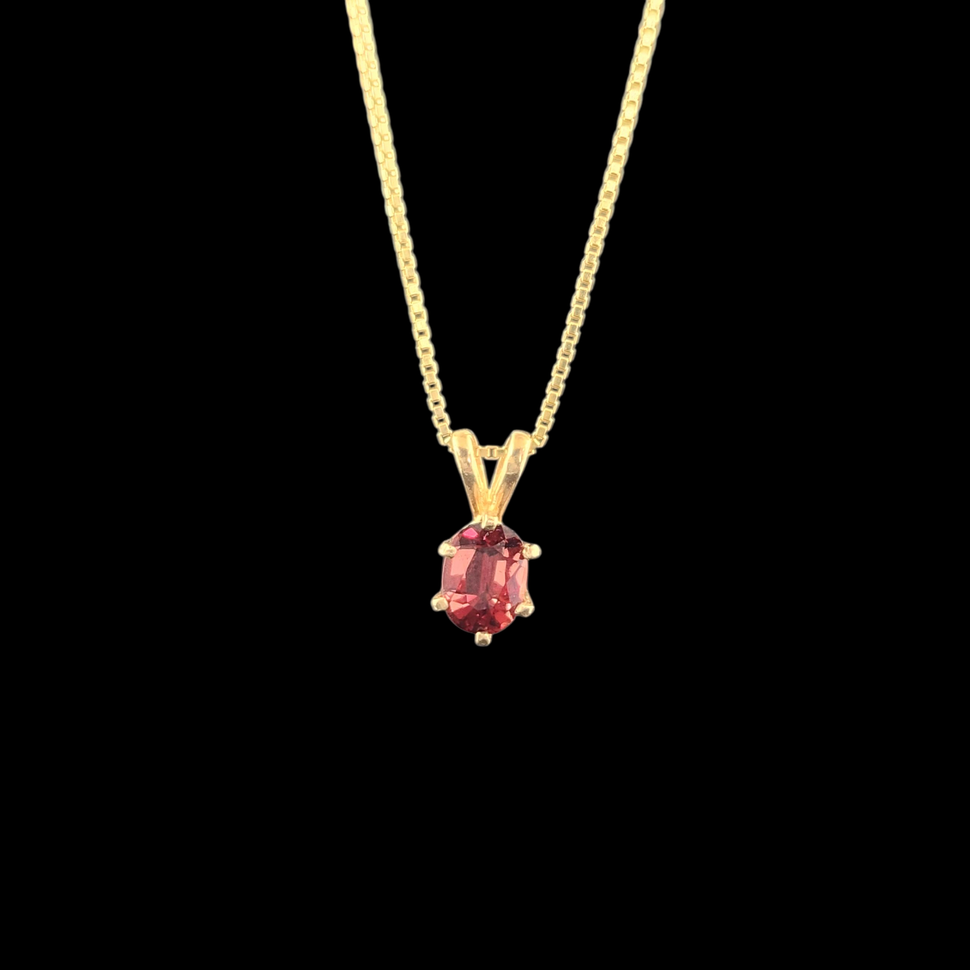 Oval 6x4mm Red Garnet set in 14ky gold pendant.