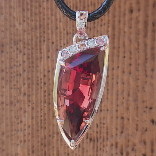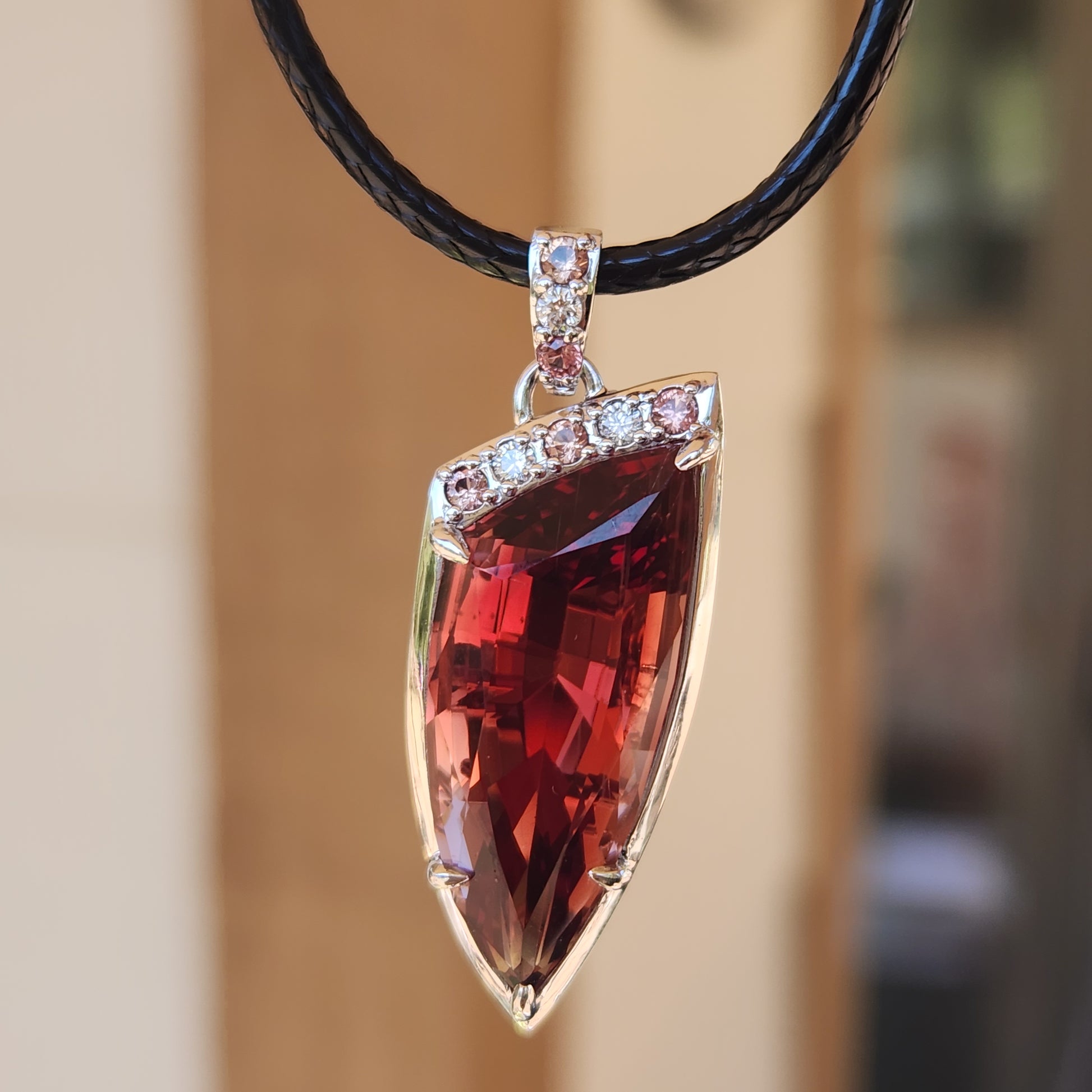15.22 ct Oregon Sunstone Pendant set in 14 kt Gold with Sapphires and diamonds.