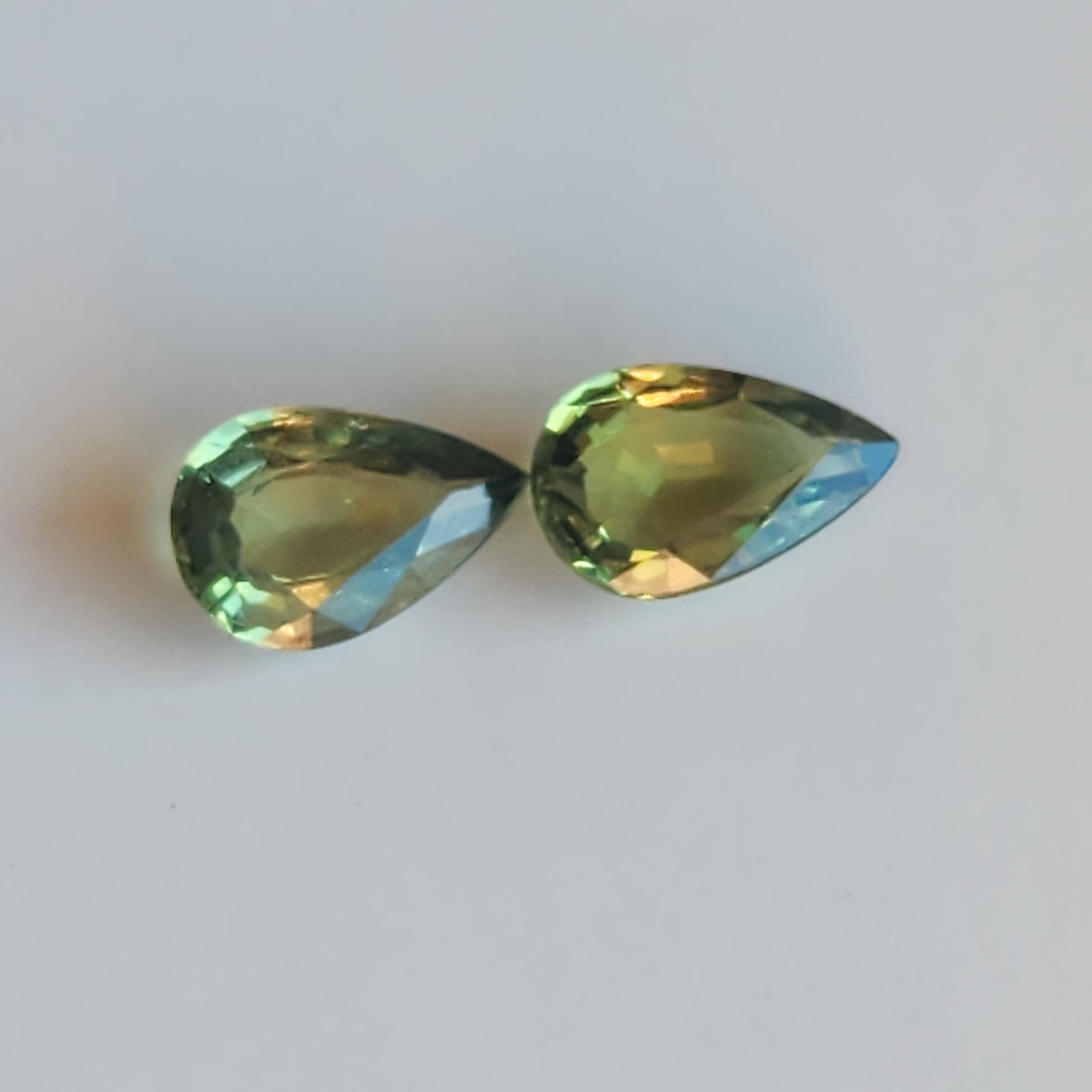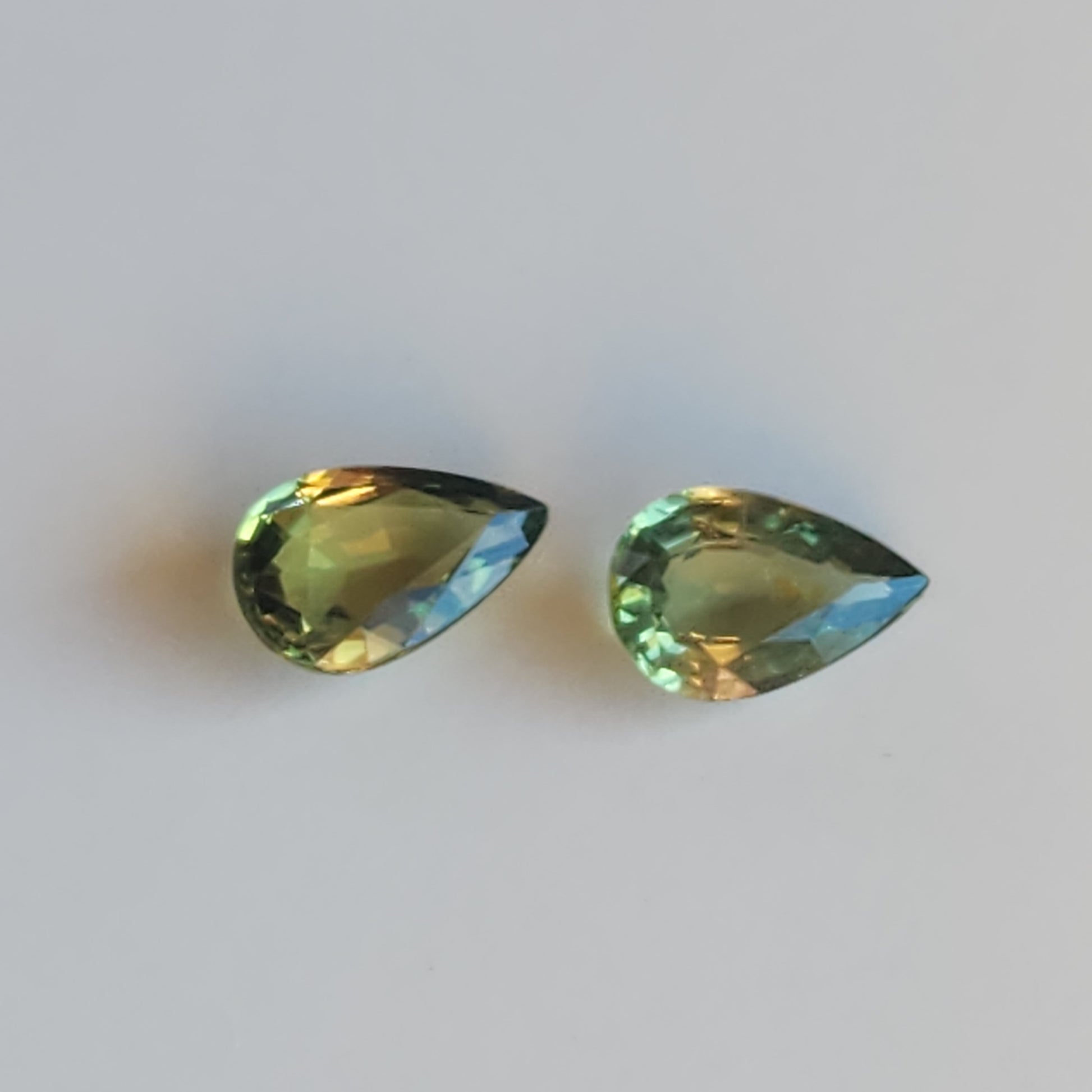 Sapphire Green and Blue. no heat. Pear Shape. 1.09 ct 6 x 4.1 mm.