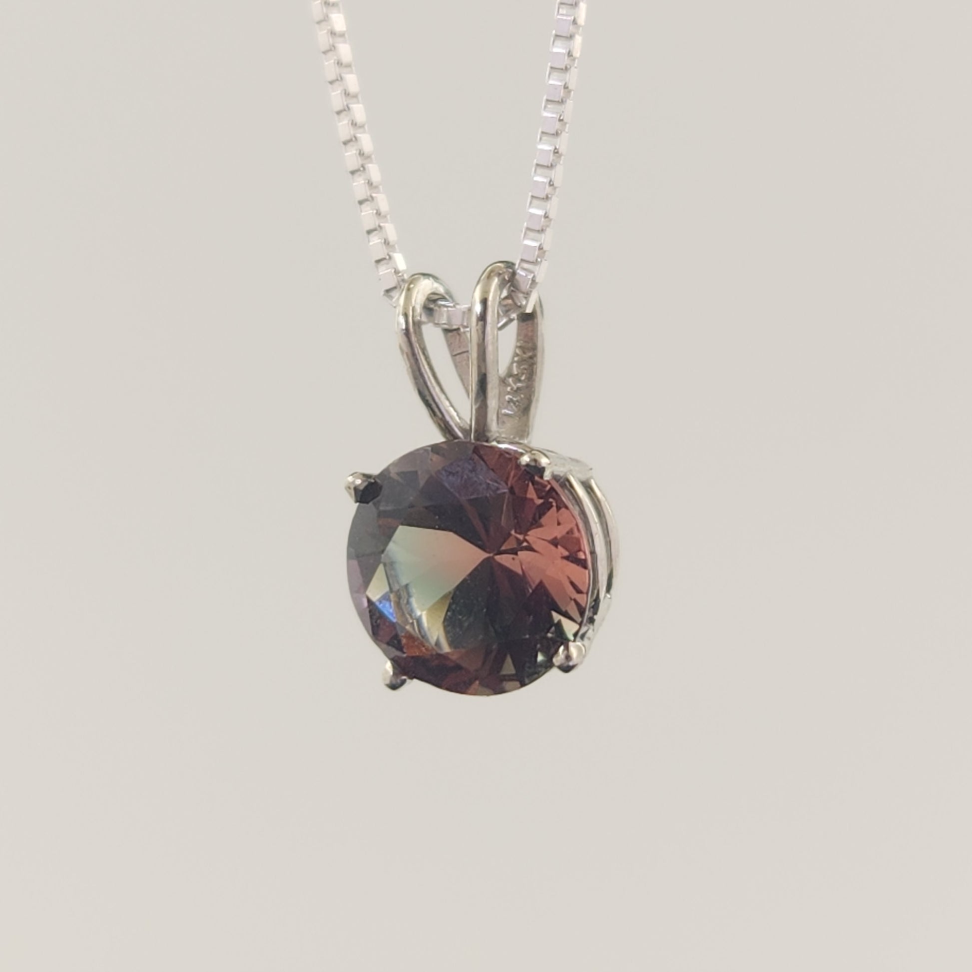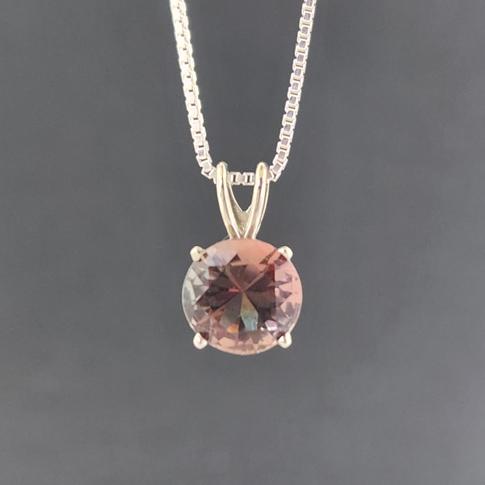 Red and Green 1.67 ct Oregon Sunstone set in 14 kw gold pendant. 8 x 8mm.