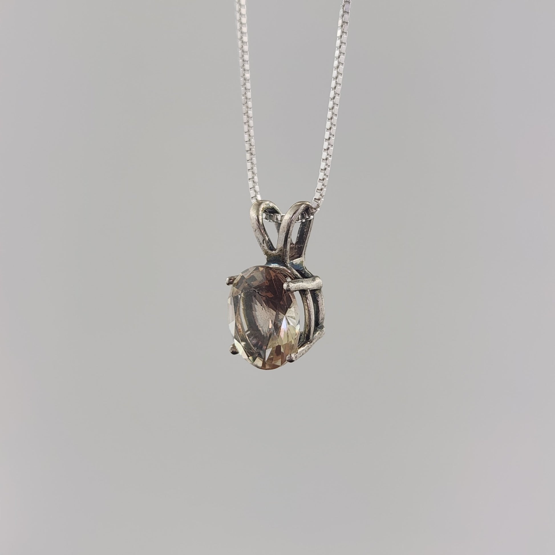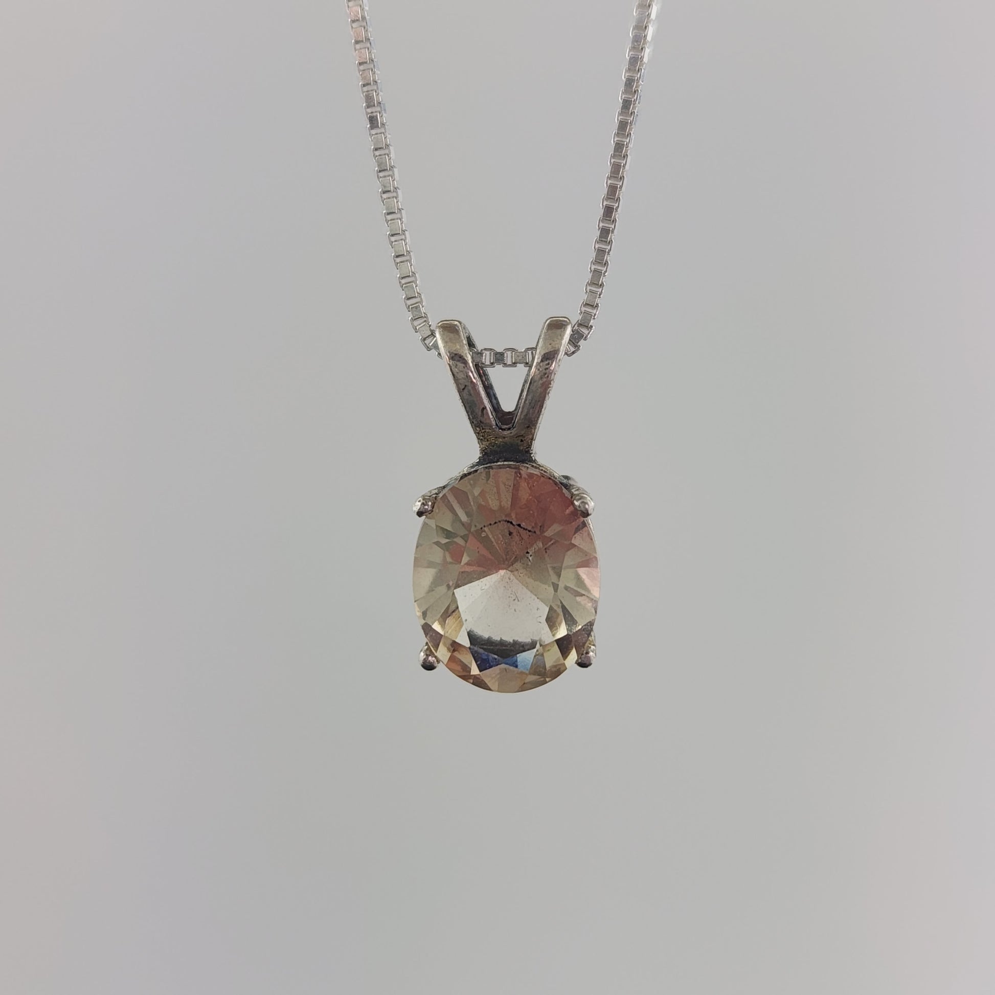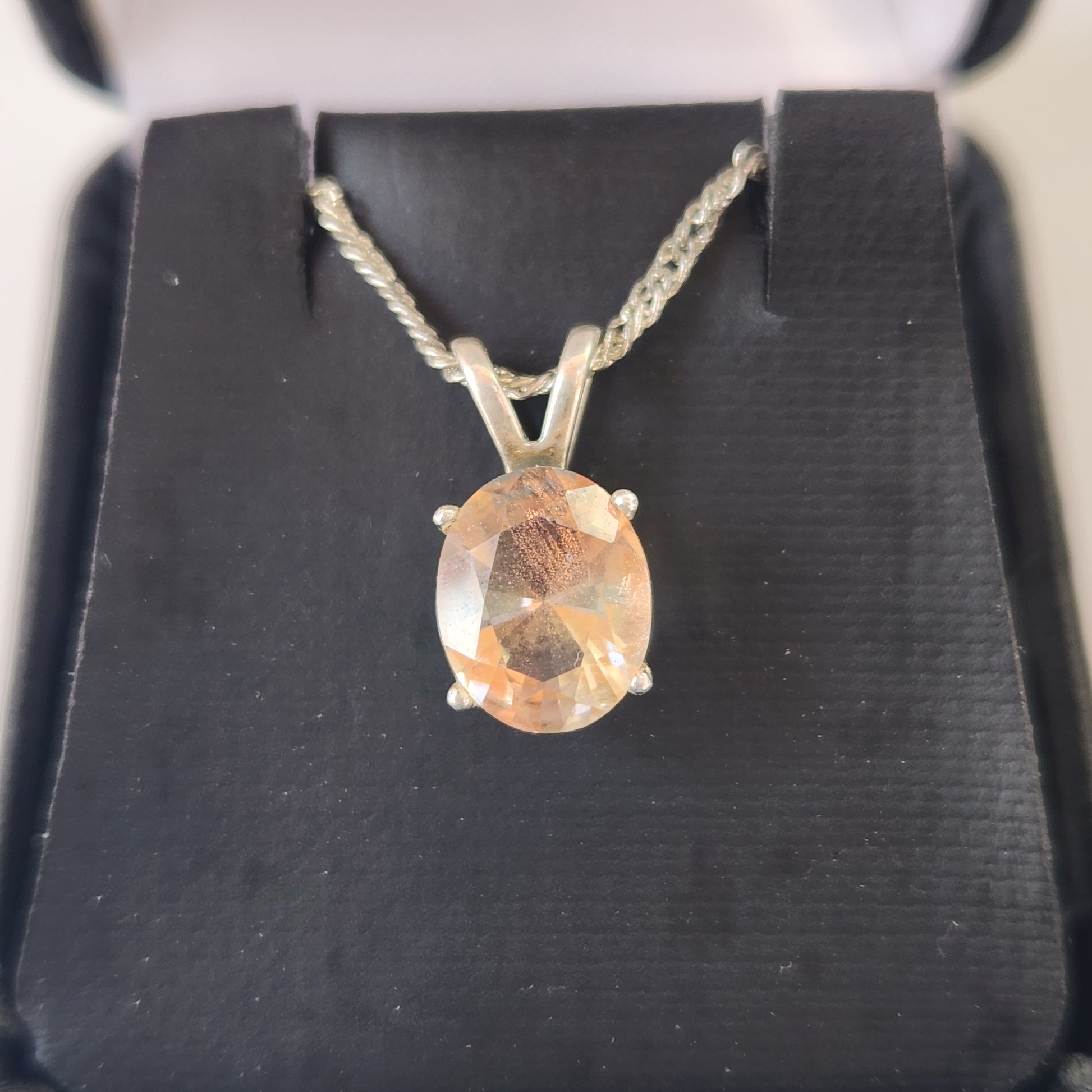 Oval 2.32 ct. Sunstone with lovely schiller set in sterling silver pendant.