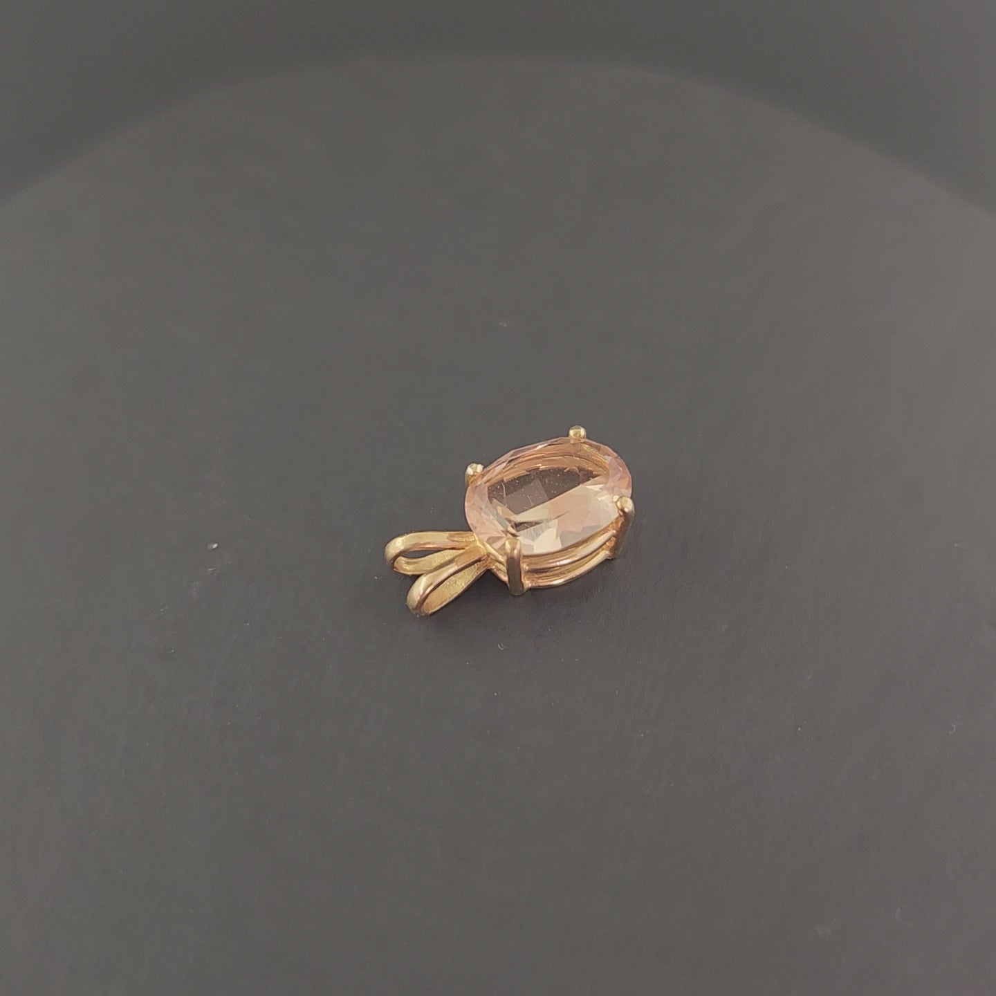 Oval cut 10x7mm peach topaz set in 14ky gold pendant.