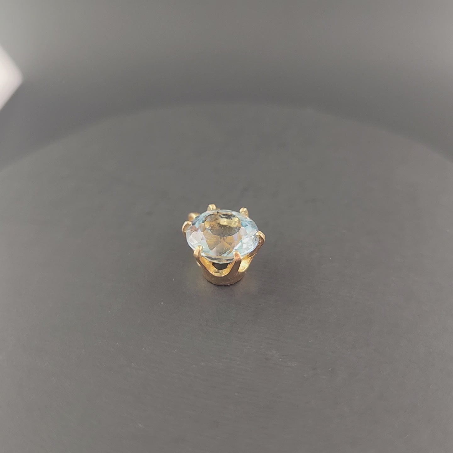 Round cut 9mm blue Topaz facet set in 14ky gold pendant.